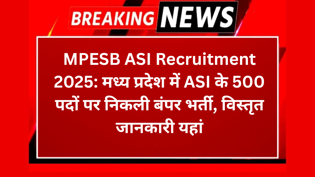 MPESB ASI Recruitment 2025: मध्य प्रदेश पुलिस में 12वीं पास के लिए 500 पदों पर बंपर भर्ती – जल्दी करें आवेदन!