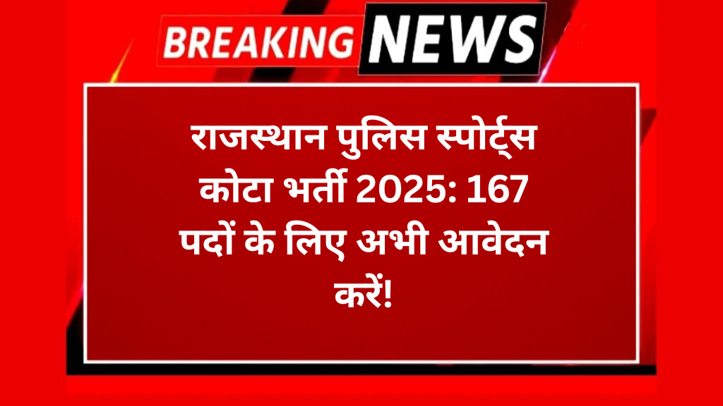 राजस्थान पुलिस स्पोर्ट्स कोटा भर्ती 2025: 167 पदों के लिए अभी आवेदन करें!